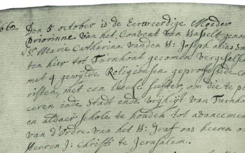 De kanunnikessen van Hasselt kiezen Turnhout als locatie voor een nieuw Heilig Grafklooster. Op 5 oktober komen de eerste vijf zusters met de huifkar aan in de stad.