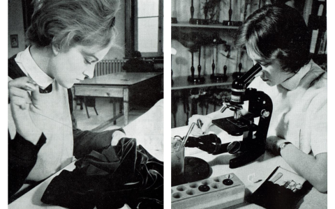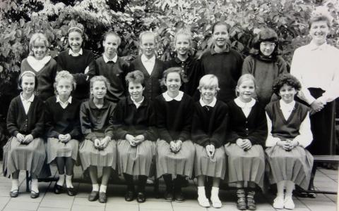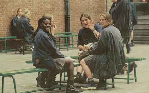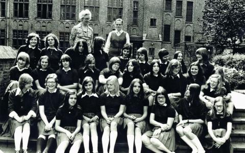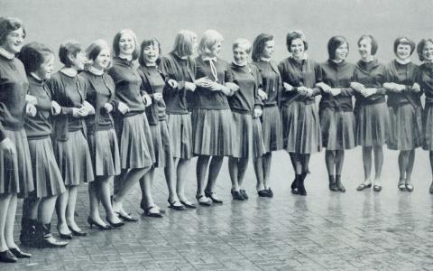 Het alom gekende uniform met de grijze plooirok wordt geïntroduceerd.