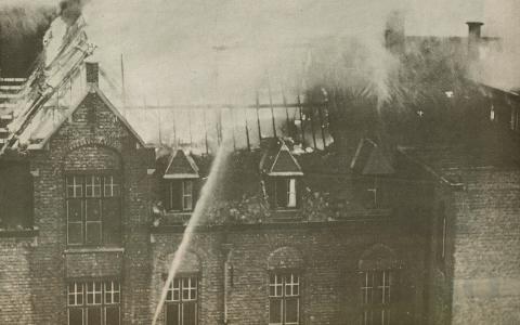Op de vooravond van het nieuwe schooljaar verwoest een enorme brand delen van zowel het klooster als de school.