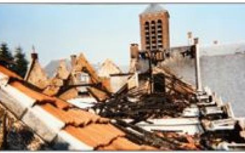 Als gevolg van dakwerken ontstaat een zware brand die o.a. de kloosterkerk vernielt.