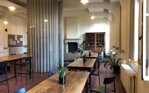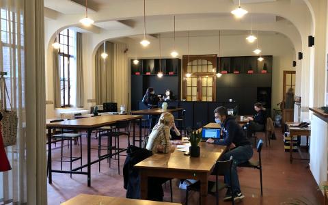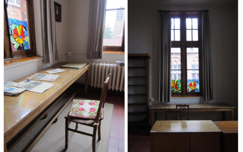 De nieuwe leraarskamers in de vroegere kloosterliving en -bibliotheek worden in gebruik genomen.