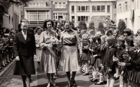 Koningin Fabiola brengt een uitgebreid bezoek aan de school.