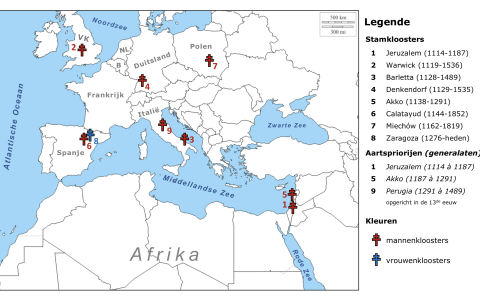 Kruisvaarder Godfried van Bouillon installeert 20 kanunniken bij het graf van Christus in Jeruzalem (verantwoordelijk voor de opvang en begeleiding van pelgrims).