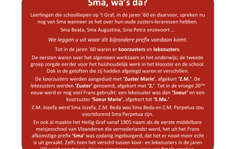 O.l.v. ‘Sma Jozefa’ worden de middelbare meisjesscholen van het Heilig Graf vernederlandst: een primeur voor Vlaanderen! Aansluitend richt de visionaire zuster de eerste normaalschool voor meisjes in de volkstaal op en in 1918 komt er een klassieke humaniora (Grieks-Latijn was nog verplicht als vooropleiding voor de universiteit). Z.M. Jozefa vindt steun in politieke en industriële middens, met respectievelijk Frans Van Cauwelaert en Lieven Gevaert. Samen met Rector Bouwens zorgen deze heren ervoor dat het Heilig Graf er ook materieel sterk op vooruit gaat. Verder is de immer strijdbare zuster ook bevriend met o.a. Marie-Elisabeth Belpaire (van de volkshogeschool) en met tal van kunstenaars en schrijvers (o.a. Stijn Streuvels).