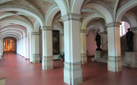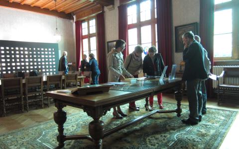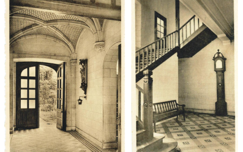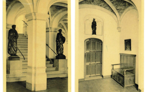 Gebouwd in 1912-14, n.a.v. 800 jaar Orde van het Heilig Graf (arch. Jules Taeymans). Bekend van de Ridderzaal en de ‘chocolatten trap’.