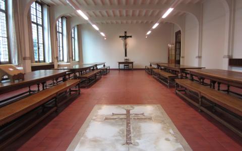 In 1922-24 verrijst de indrukwekkendste vleugel van de hele site, andermaal n.o.v. provinciaal architect Jules Taeymans. Apart van enkele leslokalen, slaapzalen en een refter voor het internaat, komt er ook een grote kloosterrefter.