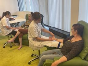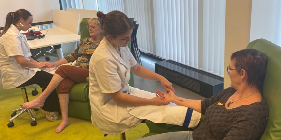 Onze 7dejaars Esthetische lichaamsverzorging trokken op 17 oktober, Dag tegen kanker, naar het ziekenhuis van Turnhout. Daar legden zij patiënten in de watten met hand-, voet- en rugmassages.