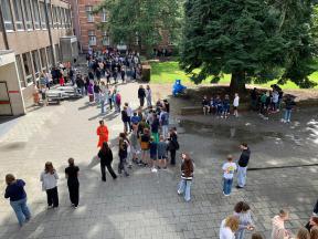 De zon liet zich helaas niet veel zien op de eerste schooldag, maar onze gebouwen en pleinen vulden zich met fijne vakantieverhalen, nieuwsgierige blikken, hier en daar een portie zenuwen en veel blije (her)ontmoetingen!