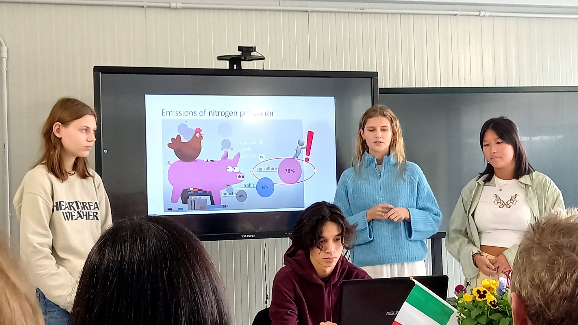 Na een warm welkom op de school in Arzachena en een ongelooflijk uitgebreide lunch (in een hotelschool 😉) startten we ons programma. De presentatie van onze leerlingen over ‘ecological agrocultural farming’ was van hoog niveau. We maakten kennis met de diverse problematieken in de verschillende deelnemende landen.