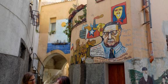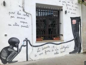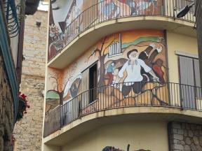 De volgende dag nodigde Sardinië ons uit voor een bezoek aan de stad Orgosolo. Dit bergdorp was werkelijk waar een heus geschiedenisboek! Op tientallen muren en in alle hoekjes en steegjes bewonderden we muurschilderingen met een kritische ondertoon die belangrijke momenten uit de wereldgeschiedenis verbeeldden. Kippenvel!