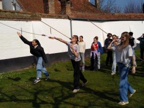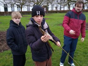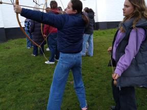 De ervaren gidsen laten onze leerlingen de prehistorische geschiedenis in onze streken in het echt beleven. Ze krijgen aan de hand van een diorama uitleg én ervaren in levenden lijve hoe moeilijk het was om met pijl en boog of een speer te jagen. Ze krijgen ook de kans om kleding uit de verschillende periodes van de prehistorie te dragen.