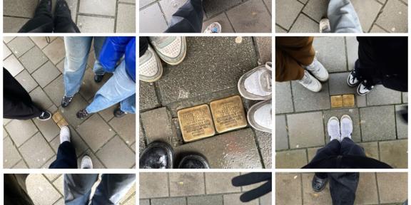 De struikelstenen op de foto zijn gedenktekens ter nagedachtenis van slachtoffers van WOII. Je vindt de stenen in het voetpad voor vroegere woonhuizen van mensen die door nazi’s werden verdreven, gedeporteerd en vermoord of tot zelfmoord werden gedreven. Struikelstenen vormen een onderdeel van het herdenkingsbeleid van de stad over de Tweede Wereldoorlog. ![]()