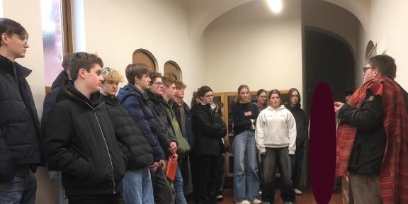 Onze 4dejaars Natuurwetenschappen kregen een rondleiding door meneer Horsten, hun leerkracht geschiedenis uit de eerste graad. Hij nam hen mee op pad doorheen campus Patersstraat en vertelde fascinerende verhalen, historische feiten en verborgen geheimen. Deze unieke kijk op de geschiedenis van onze school zal ongetwijfeld de creativiteit aanwakkeren voor hun schrijftaak over stedelijke legendes en storytelling binnen het vak Taal & cultuur.