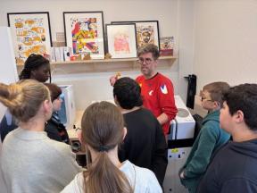 De leerlingen werden in dit project begeleid door hedendaags kunstenaar Dennis Marien. Chris Campers, initiatiefnemer van het project Blijde Gedachten, is enthousiast: “De artistieke samenwerking tussen Dennis, de leerlingen en de leerkrachten leverde prachtige resultaten op. Samen werden er knappe toepassingen gemaakt vanuit het experiment met oude en nieuwe grafische technieken. Het bezoek aan het Speelkaartenmuseum en het Fablab zorgden voor heel wat inspiratie als verbindende factor tussen vroeger en nu. De resultaten worden gebundeld tot een publicatie.”