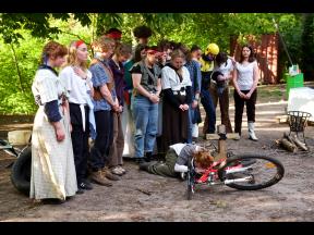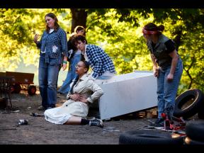 Onze 5dejaars Woordkunst-drama speelden op 16 en 17 mei de openluchtvoorstelling 'Strangers don't last long here' op het terrein van Scouts Sint-Michiel in Turnhout.