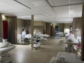 De leraren van de opleiding werden actief betrokken bij de inrichting en de kleurkeuze van het schoonheidssalon. Inge Verheyen, leerkracht lichaamsverzorging, vertelt met passie over haar nieuwe werkplek: “Mijn collega's, leerlingen en ik zijn enorm enthousiast over deze mooie en moderne leeromgeving. Het nieuwe schoonheidsinstituut biedt veel ruimte, warme kleuren en is uitgerust met het nieuwste materiaal. Klanten kunnen hier maximaal ontspannen in een rustige en comfortabele omgeving. De winkelruimte, vergaderzaal en de wachtruimte maken het helemaal af. Met deze nieuwe lokalen kunnen we realistischer werken dan ooit.”