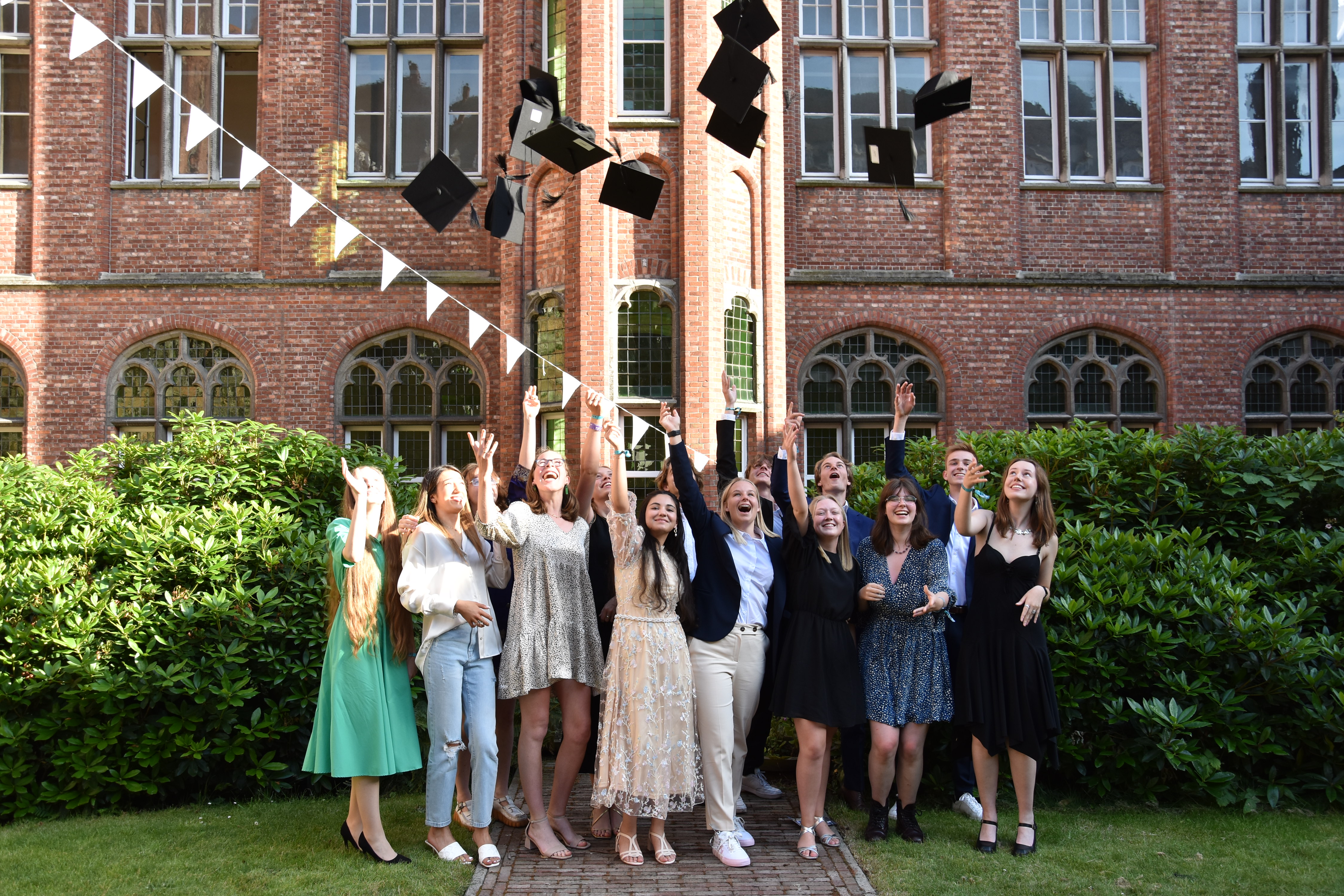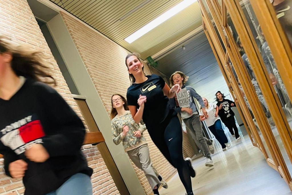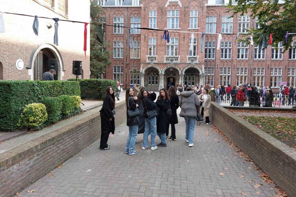 Leerlingen en leerkrachten lopen dwars door campus Apostoliekenstraat.