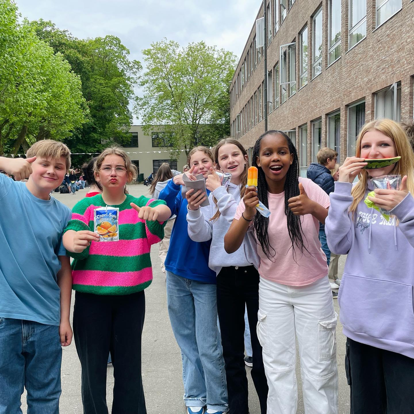 Leerlingen genieten van een gezellige zomerse markt op campus Apostoliekenstraat.