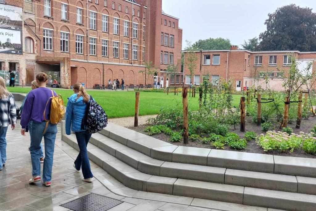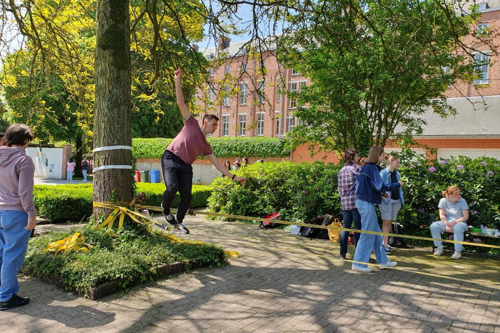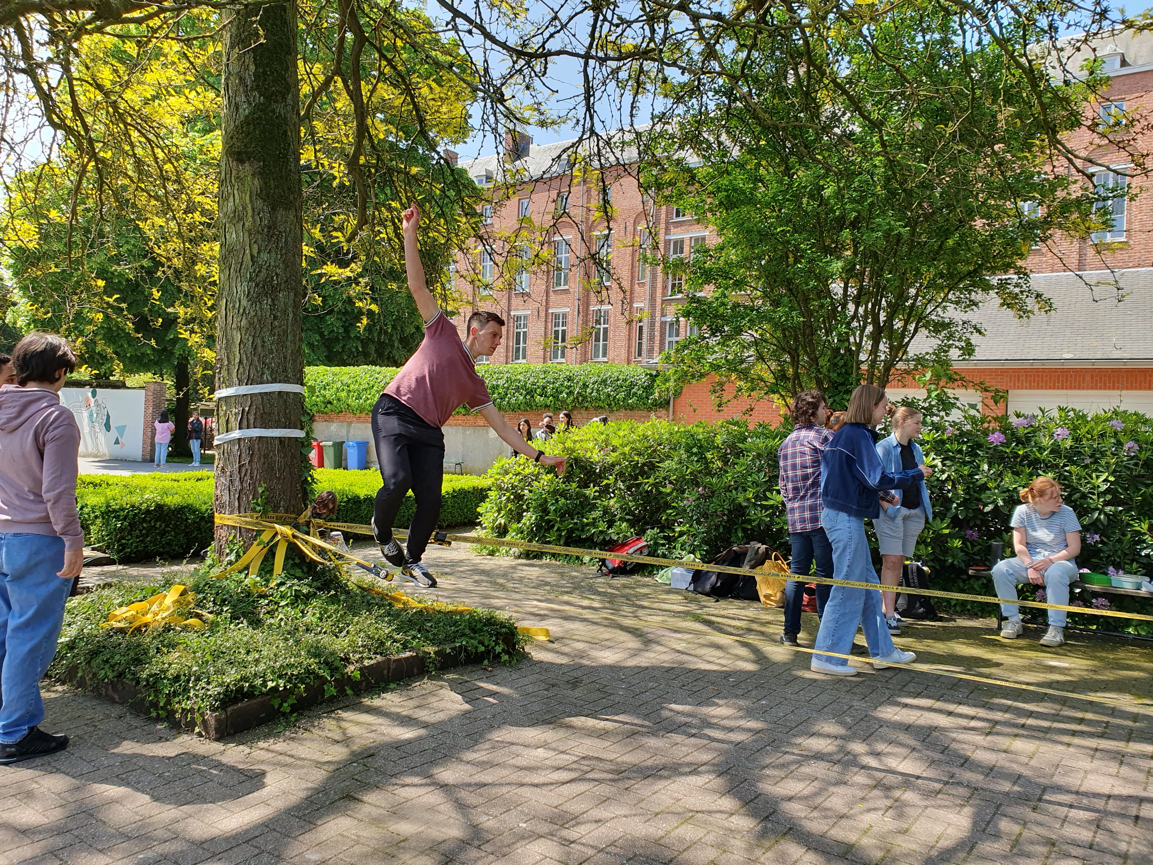 Leerlingen genieten van een sportieve break tijdens de middagpauze.