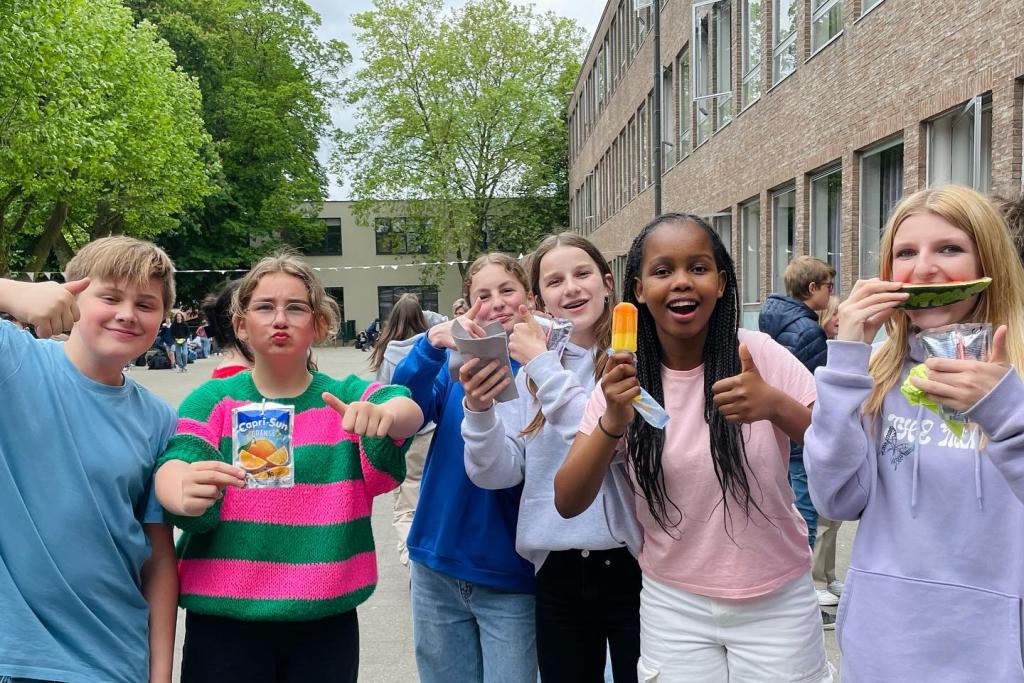 Leerlingen genieten van een gezellige zomerse markt op campus Apostoliekenstraat.